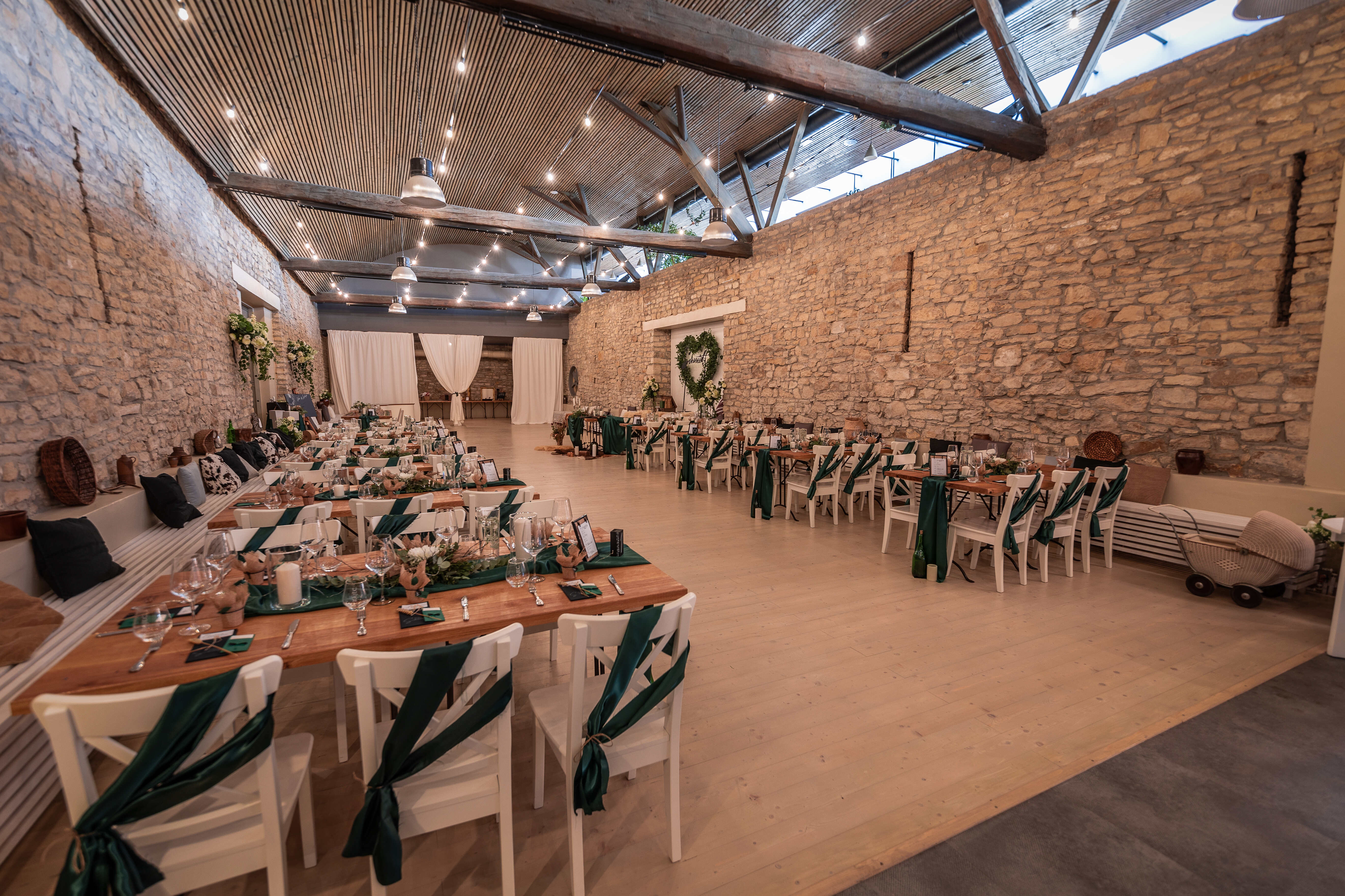 Komplexní areál MODRÉ STODOLY se pyšní stylovou restaurací s rozlehlou terasou a možností grilování (nejen v letních měsících), která je obklopená zahradou jako stvořenou pro venkovní svatební obřad. Bohatá nabídka vnitřních prostor pro obřad a hostinu je ozvláštněna o jedinečný doprovodný program. Těšit se můžete na 4 bowlingové dráhy, únikové místnosti a především na music cocktail club s profesionální ozvučovací technikou, díky kterému můžete s rodinou a přáteli slavit až do rána.