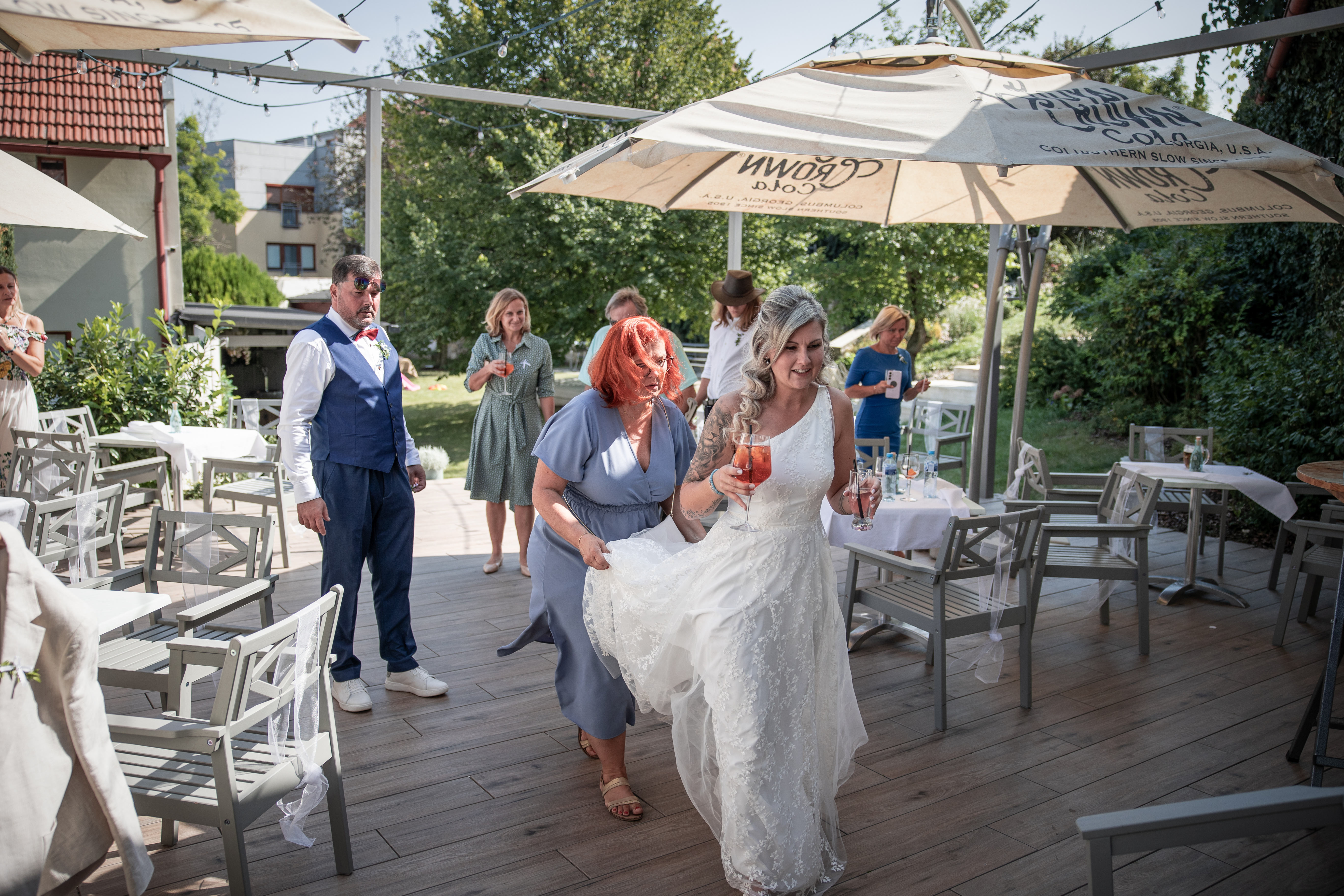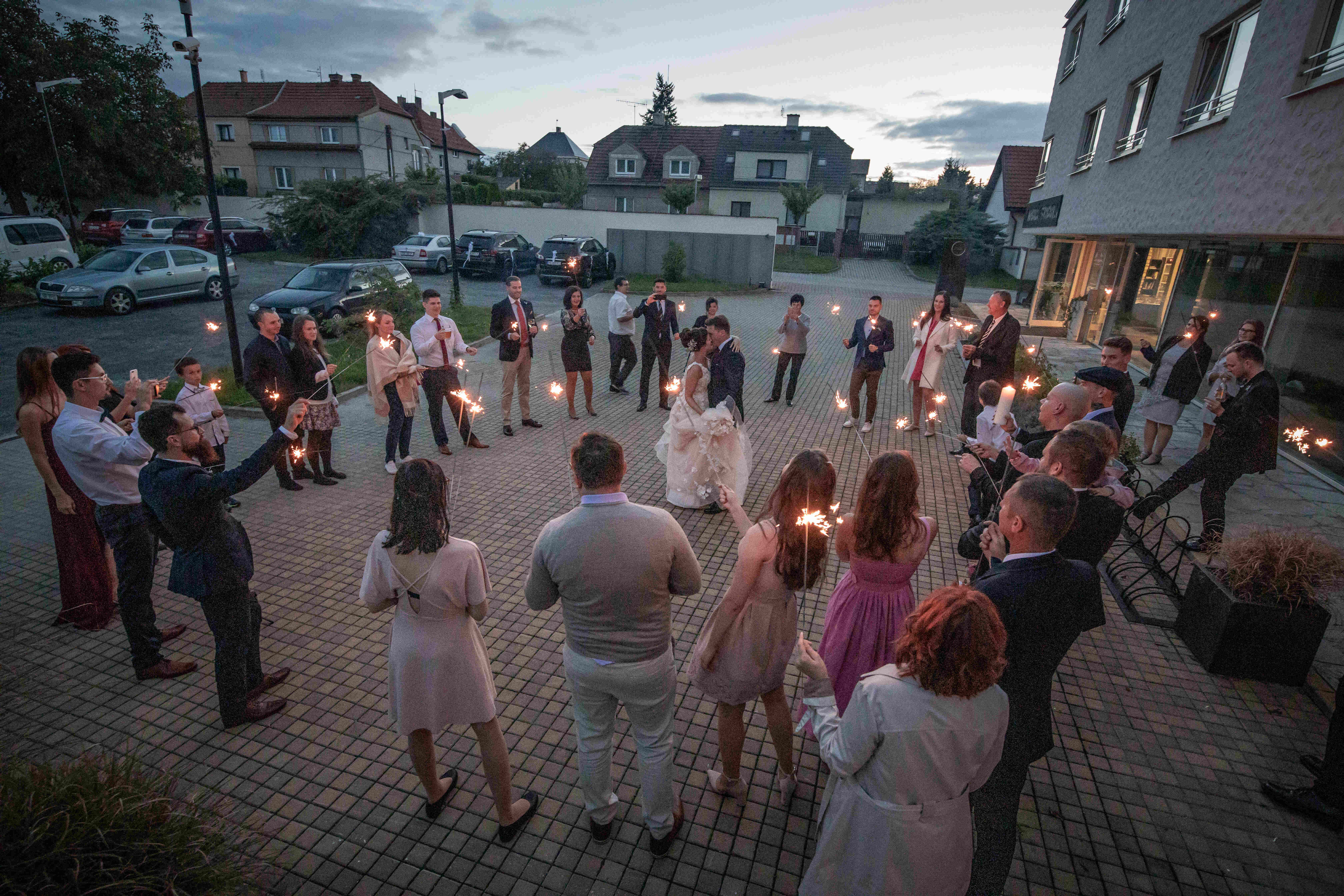 Myslíme na všechny Vaše hosty! Pro rodiny s dětmi máme nově zrekonstruované hřiště se zabudovanou trampolínou, lanový park pro teenagery a v případě špatného počasí také prostorný dětský koutek. Rodinu a přátele rádi ubytujeme v krásných pokojích našeho čtyřhvězdičkového hotelu a novomanžele v luxusním apartmá. Po celou dobu je k dispozici až 70 parkovacích míst přímo v areálu. Snadná dostupnost z dálničního okruhu i blízkost mezinárodního letiště Václava Havla zaručí bezproblémový příjezd všech pozvaných hostů na svatbu.