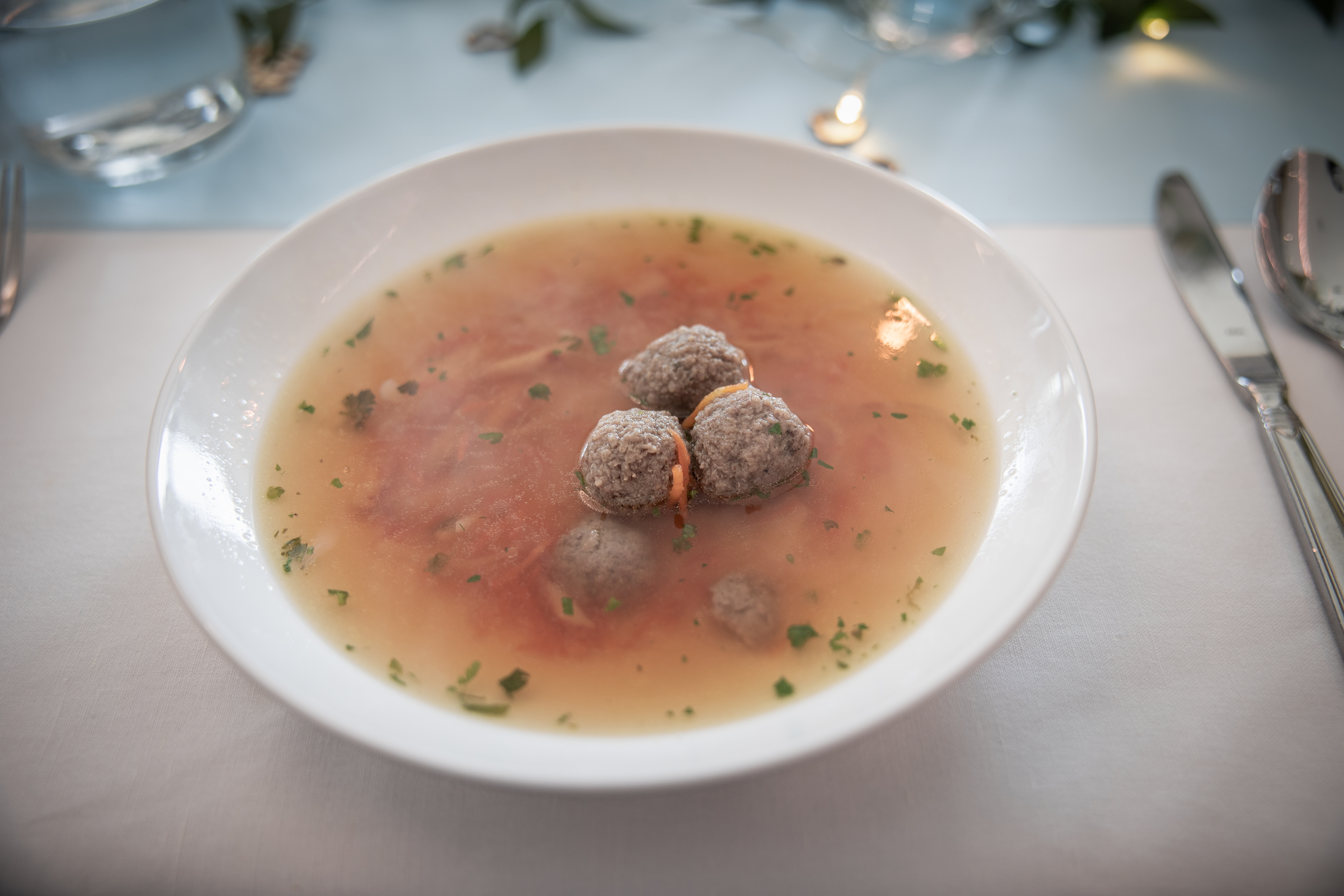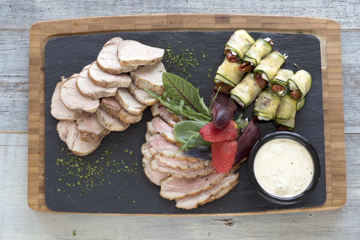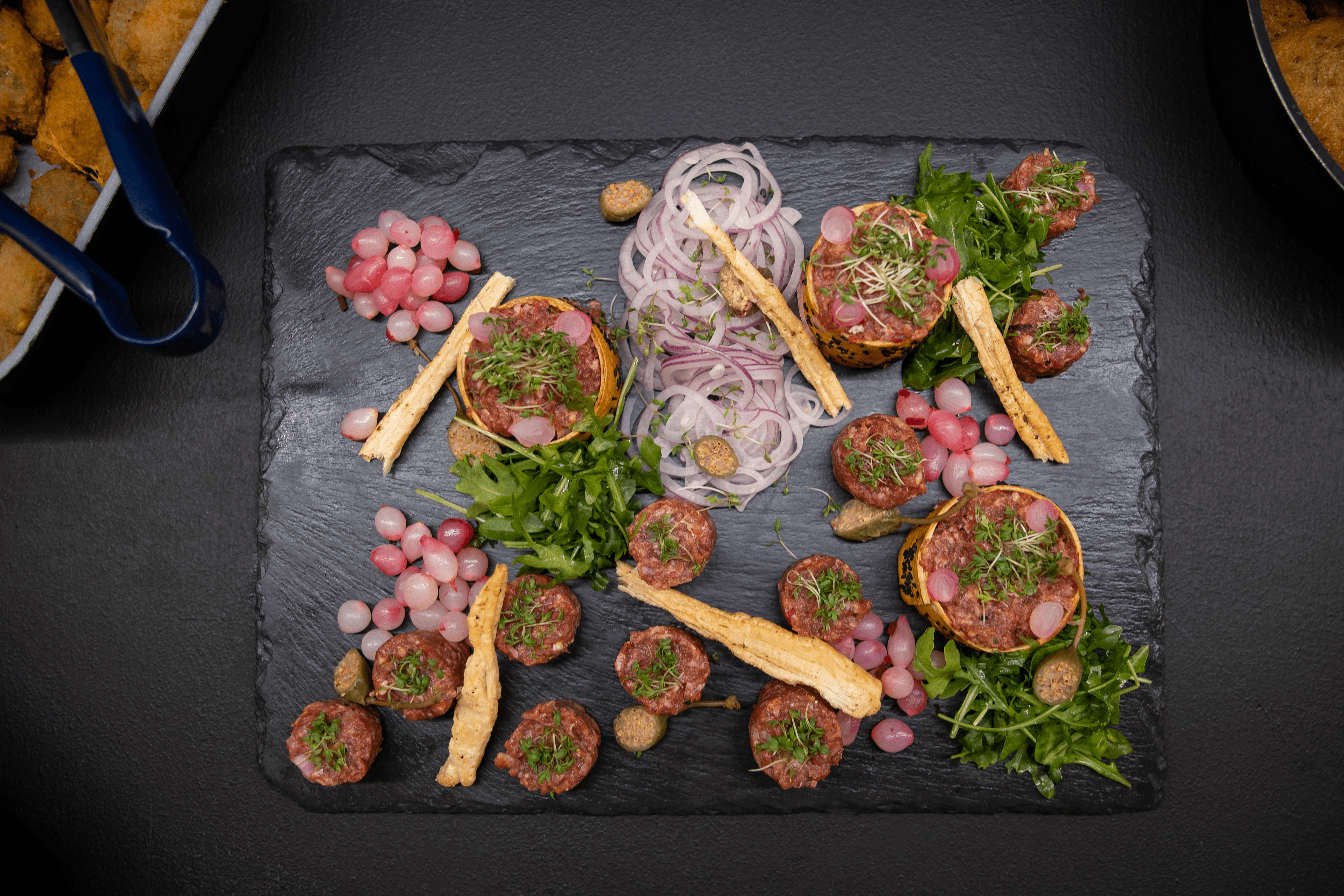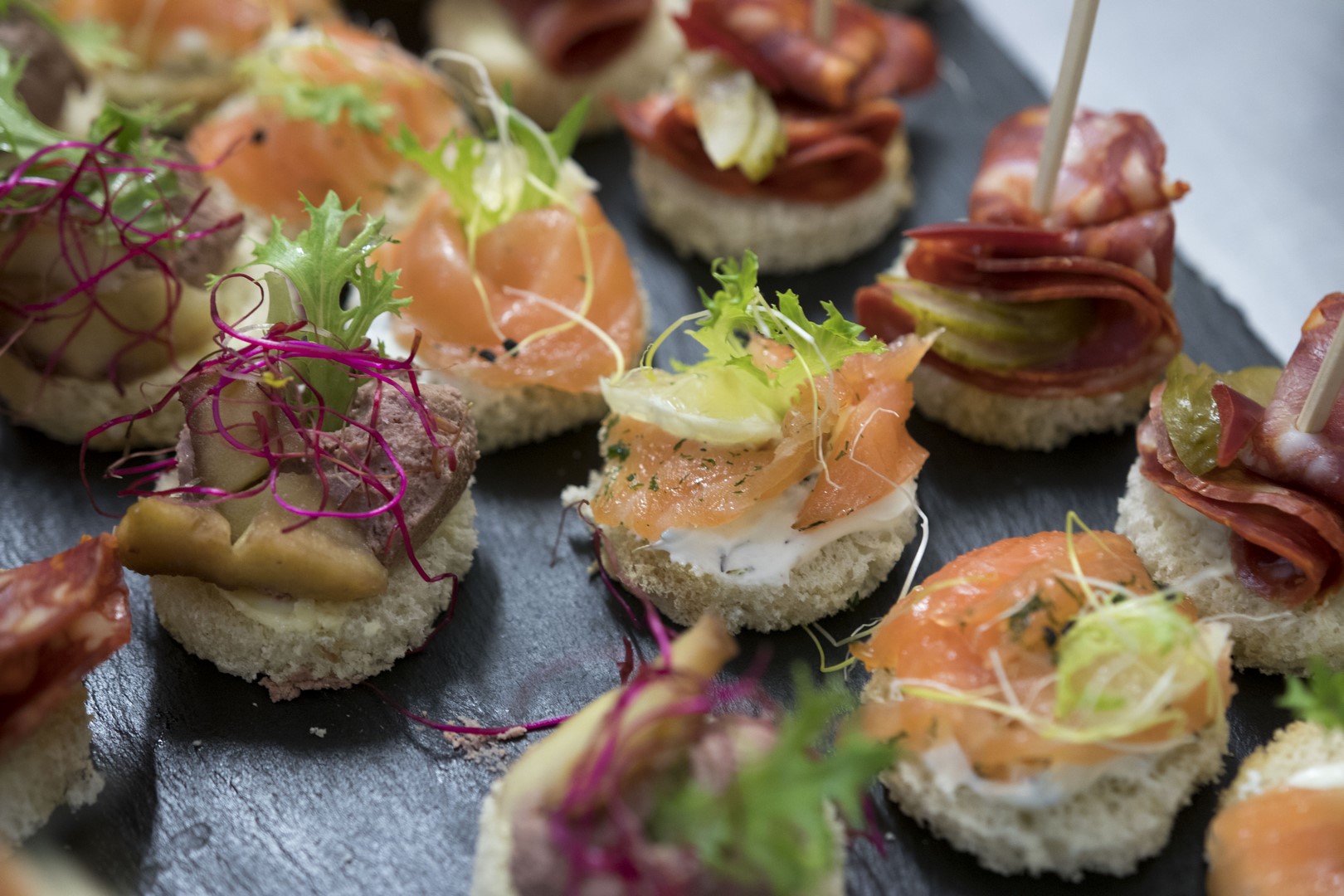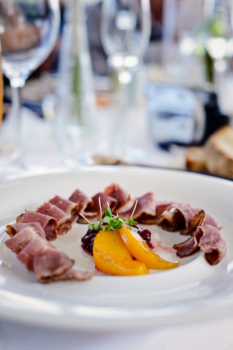 Naše menu nestaví na extrémně drahých nebo vzácných surovinách. Cílem našich kuchařů je vytvořit z kvalitních a dostupných surovin chuťový zážitek pro všechny hosty, včetně těch, kteří mají dietetická omezení. Základem je moderní česká kuchyně, rádi ale vyjdeme vstříc jakýmkoliv přáním. Vybrané pokrmy zajišťujeme výhradně vlastním cateringem - od uvítacích pohoštění, servírovaných pokrmů či rautu až po večerní občerstvení. Za příznivého počasí grilujeme na venkovní terase.